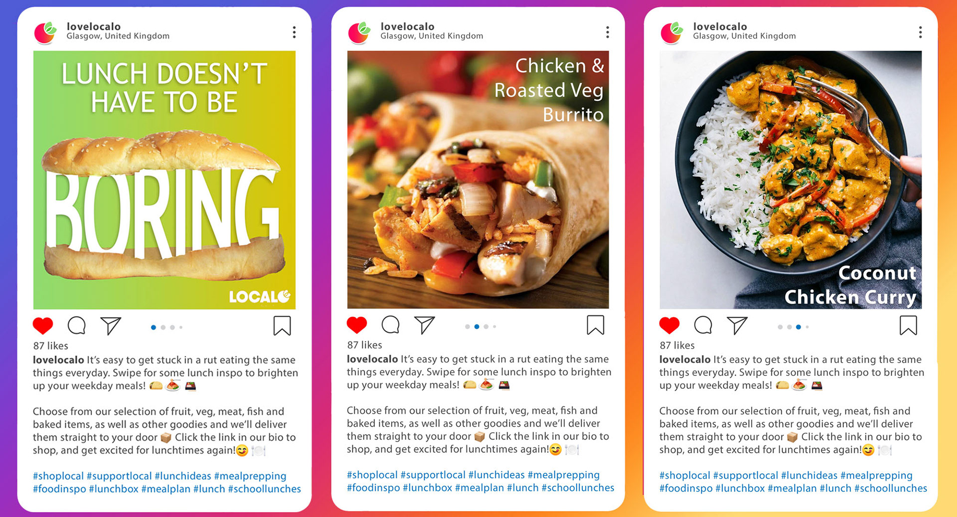 A social media post for a company that sells food selection boxes which highlights the minor daily struggle of deciding what to eat, and then serves up options.